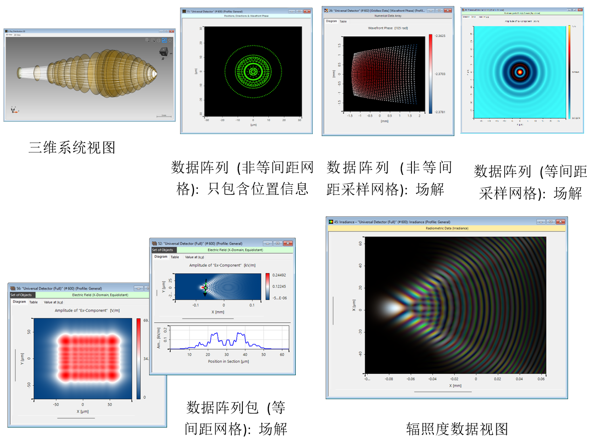 • 除了提供关于光本身的数据视图,如光场的振幅以及相位,辐照度之外,别的信息也可以添加到数据视图中。