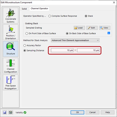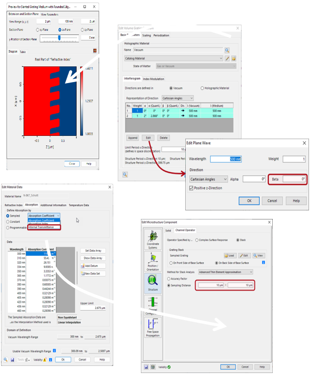 吸收特性可以用采样数据定义吸收率以及透过率。 对microstructure component来说,合适的场采样是非常重要的。VLF2023.1 可直接定义采样距离。