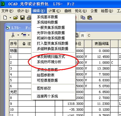 为了适应以上热平衡效果,在OCAD程序主界面的“编辑”菜单内选取“光学系统热环境分析”后会弹出如图1光学系统热环境分析窗体界面。