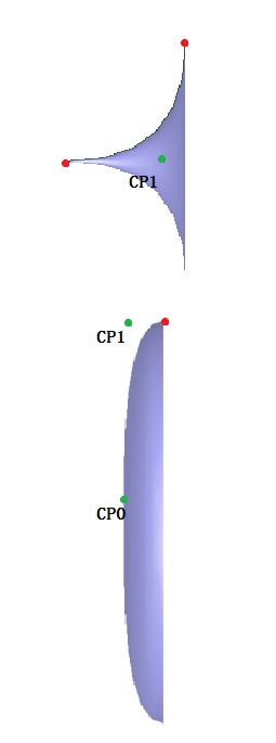 图2.导光管侧面视图,绿色的点(CP0, CP1)是将要在优化中被修改的控制点