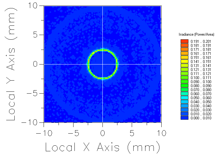 导光管的一端设定有平面随机点光源,在初始状态下,分析面上的辐射分布如下图