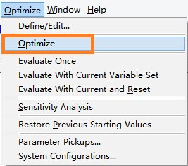 打开Optimize选择Define/Edit进行准直优化