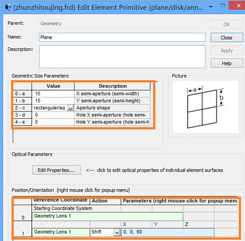 3) 输入透镜参数