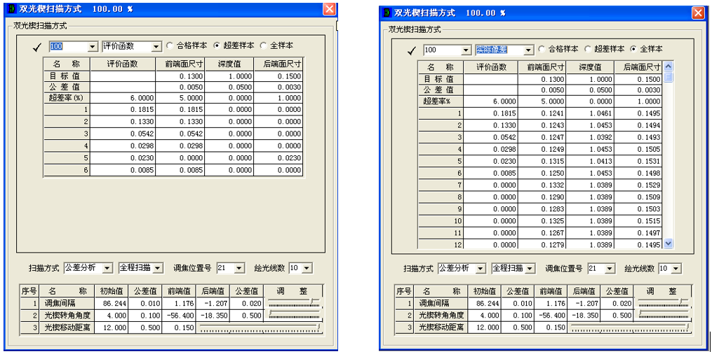 图11.双光楔三维立体深度扫描系统公差合格率数据及曲线图