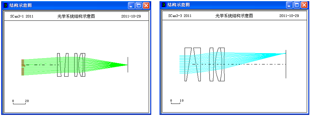 在设计时,同样在连续几次选择菜单后,在“系统基本数据”窗体内选择“双光楔扫描方式”后会出现对应窗体,在窗体上选择扫描方式如“像方深度扫描”后,窗体形式如图1。接着再在 “设计”菜单点击“双光楔扫描系统设计”出现右图,利用图中滚动条即可进行自动设计。