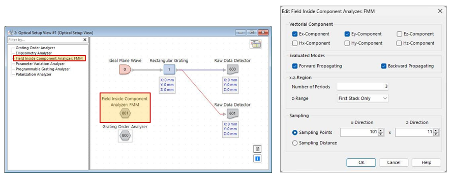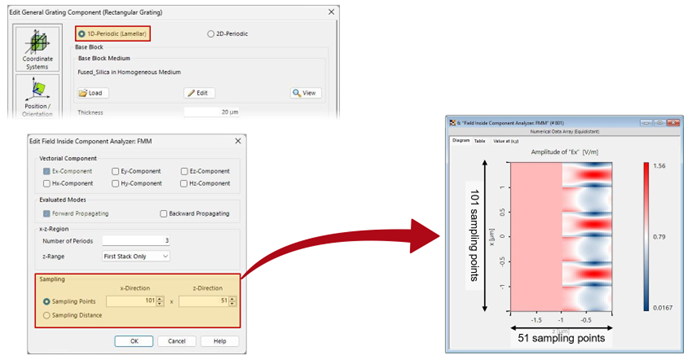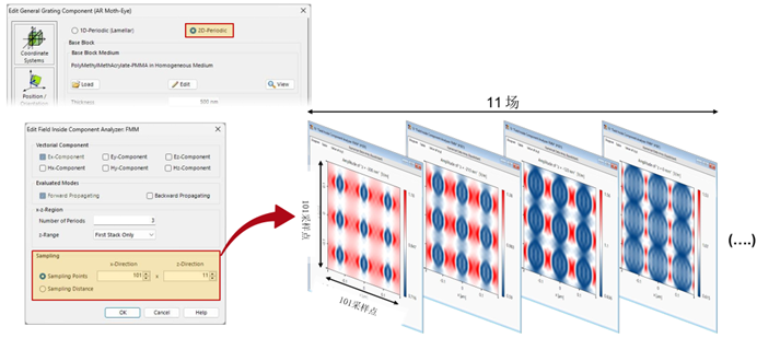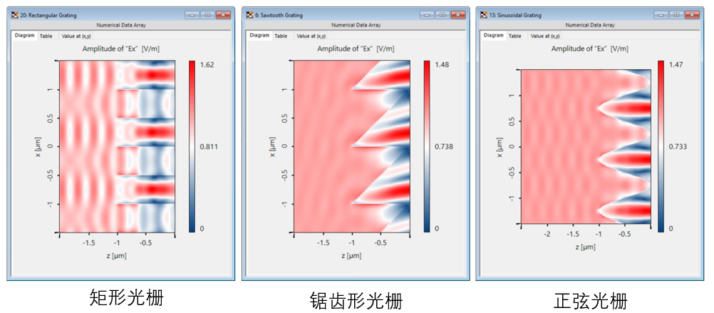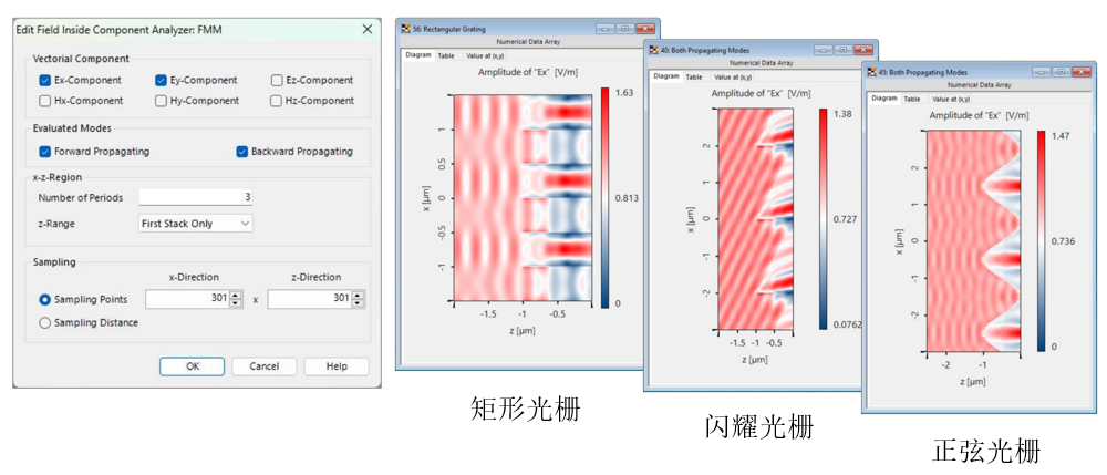 元件内部场分析器:FMM是光栅光学装置的独有功能,可提供光栅结构内部电磁场的可视化。