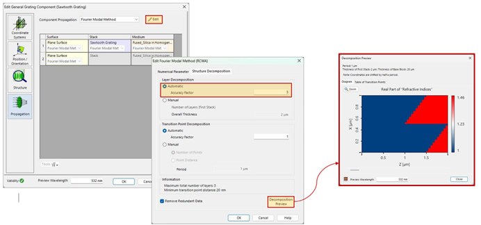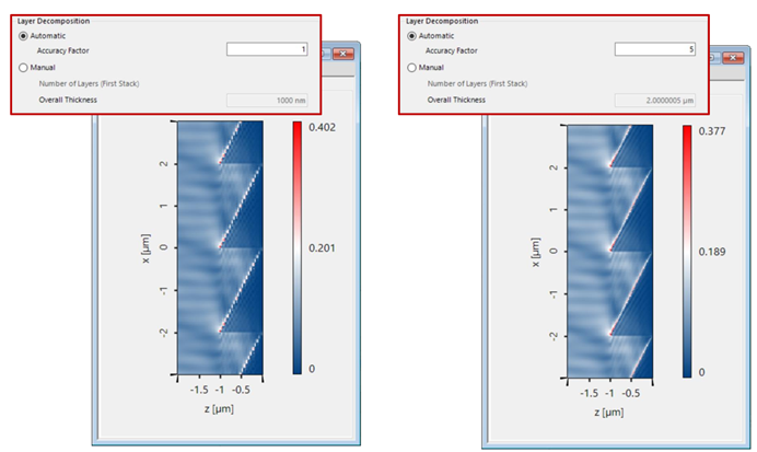 光栅结构的充分采样意味着已经实现了收敛,即进一步增加采样不会显著影响产生的场。例如,如果层分解过于粗糙,则可能会由于纵断面中的大台阶而产生其他影响。