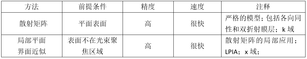 每束光束在复杂系统中传播时都与不同类型的光学元件相互作用。因此,一个精确的模型需要算法的无缝交互性,以便能够处理以下出现的所有方面: