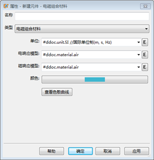 (2)电磁组合材料:电磁参数通过已定义的材料进行设置,电响应模型所选中材料的电参数将作为电磁组合材料的电参数,同样磁响应模型所选中材料的磁参数将作为电磁组合材料的磁参数。
