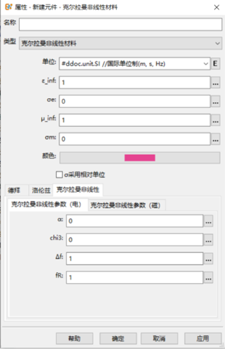 (3)克尔拉曼非线性材料:克尔非线性模型用于模拟非线性参数不随频率变化的三阶非线性材料,可以用于任何结构模型。